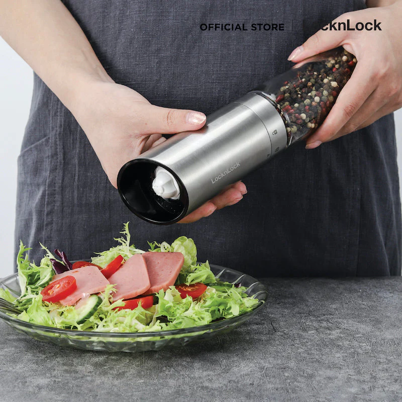 เครื่องบดเกลือและพริกไทย ดีไซน์พรีเมียมจับถนัดมือจาก LocknLock ผลิตจากวัสดุคุณภาพสูงอย่างสแตนเลส แก้ว พอร์ชเลน ฯลฯ ใช้งานง่าย ควบคุมการบดได้ตามต้องการเพียงแค่เอียงผลิตภัณฑ์ลงเครื่องก็จะบดเองอัตโนมัติ
