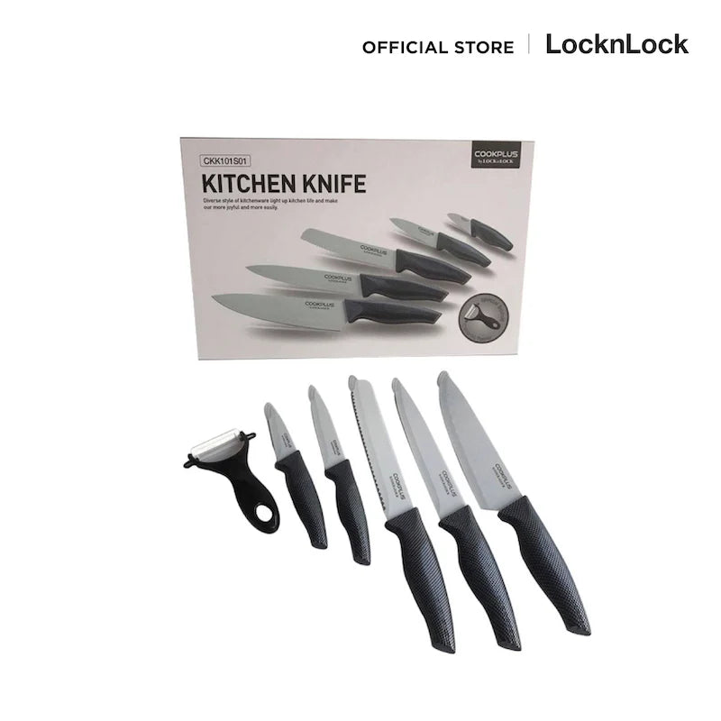 ชุดมีดทำครัว LocknLock ผลิตจากสแตนเลสคุณภาพสูง เคลือบผิวด้วยเซรามิก มีความคมทนนาน ใช้งานได้หลากหลาย ตั้งแต่มีดเชฟอเนกประสงค์ มีดหั่นเนื้อบาง มีดหั่นขนมปัง ไปจนถึงมีดปอกผลไม้ขนาดเล็ก ออกแบบด้ามจับตามหลักสรีระศาสตร์ ใช้งานสบายมือ...
