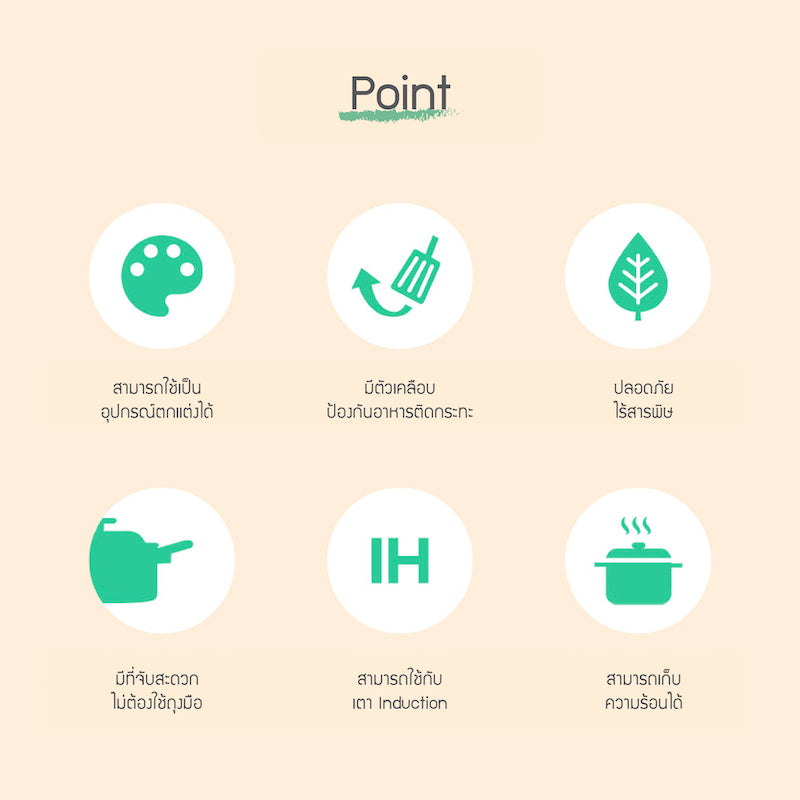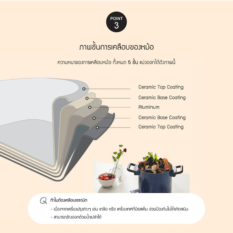 - ความหนาในการเคลือบกระทะทั้งหมด 6 ชั้น