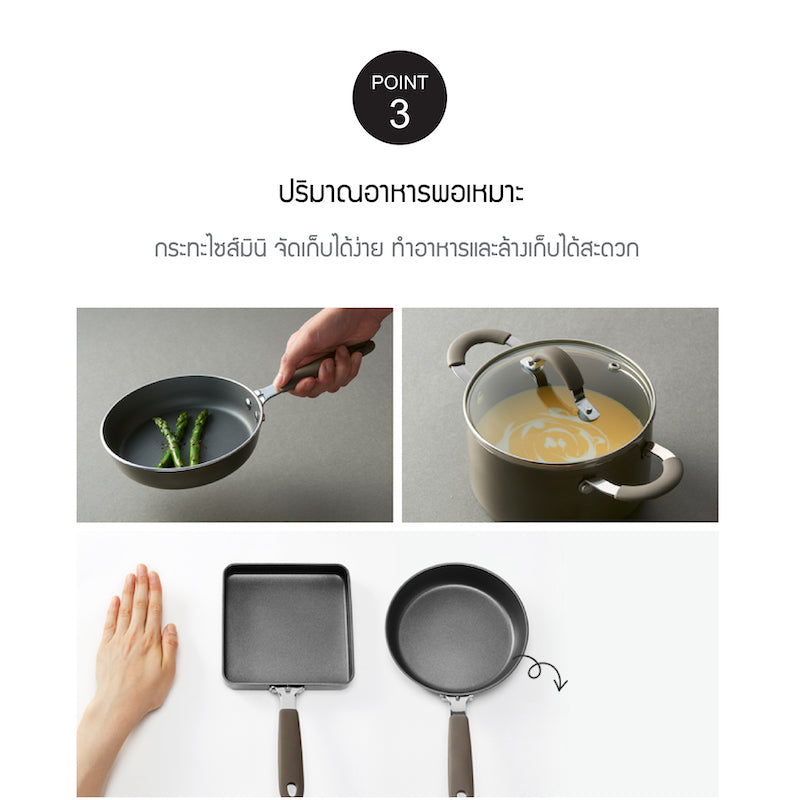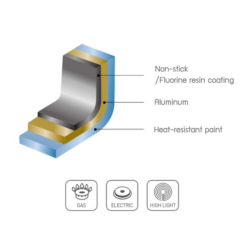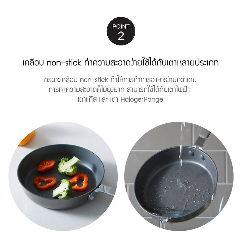 - เคลือบ Non-Stick และ Fluorine resin (สารเคลือบลื่น) หมดกังวลเรื่องอาหารติด และทำความสะอาดง่าย
