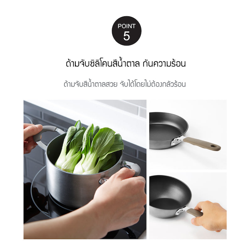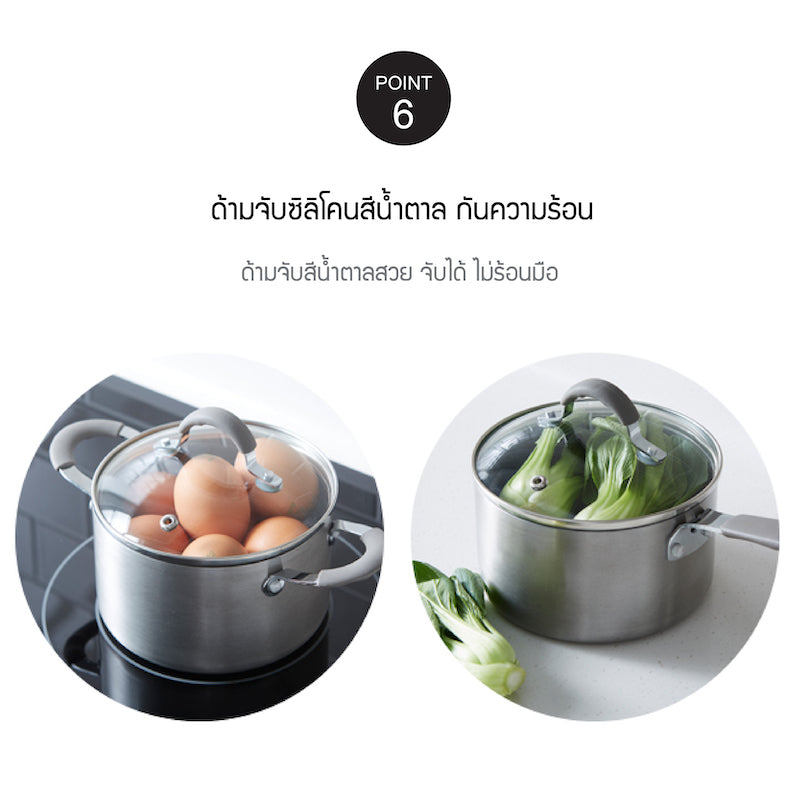 - ด้ามจับและหูจับซิลิโคนกันร้อน ปลอดภัยหายห่วง ยกได้อย่างสะดวกสบาย