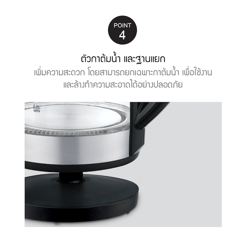 - ตัวเหยือกใส สามารถมองเห็นน้ำด้านในขณะต้มได้