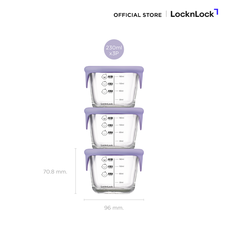 LockLock เซตกล่องแก้วถนอนมอาหารเด็ก Baby Food Container 690 ml. - LLG509S3