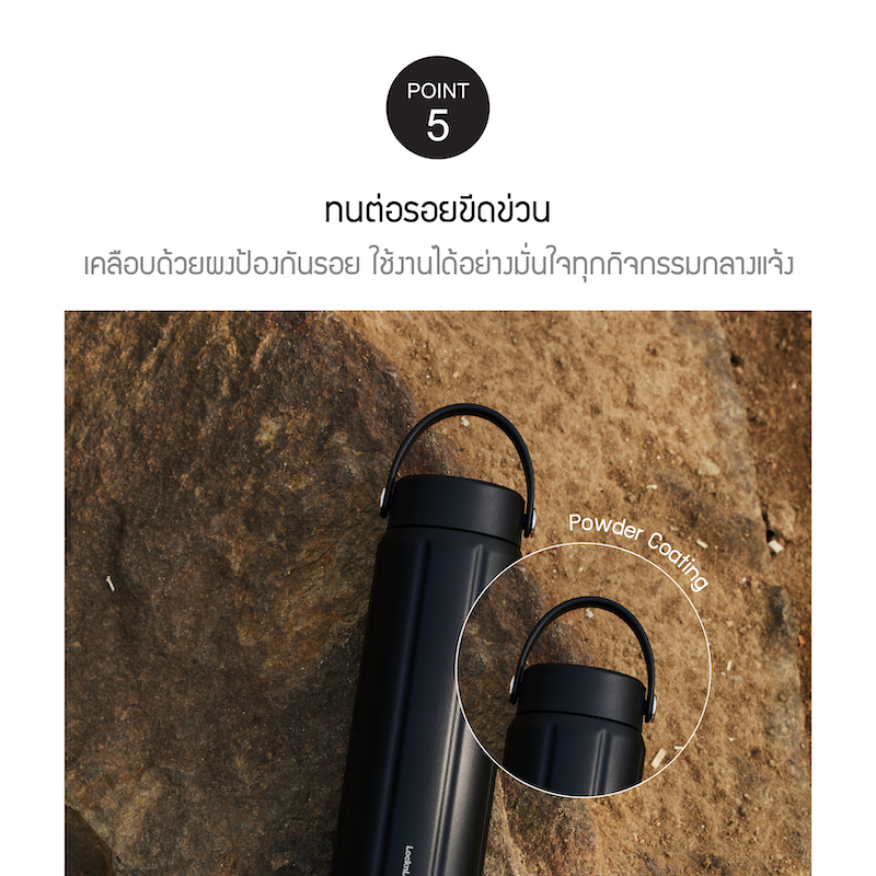 ทนต่อรอยขีดข่วน เคลือบด้วยผงป้องกันรอย ใช้ทนได้อย่างมั่นใจทุกกิจกรรมกลางแจ้ง