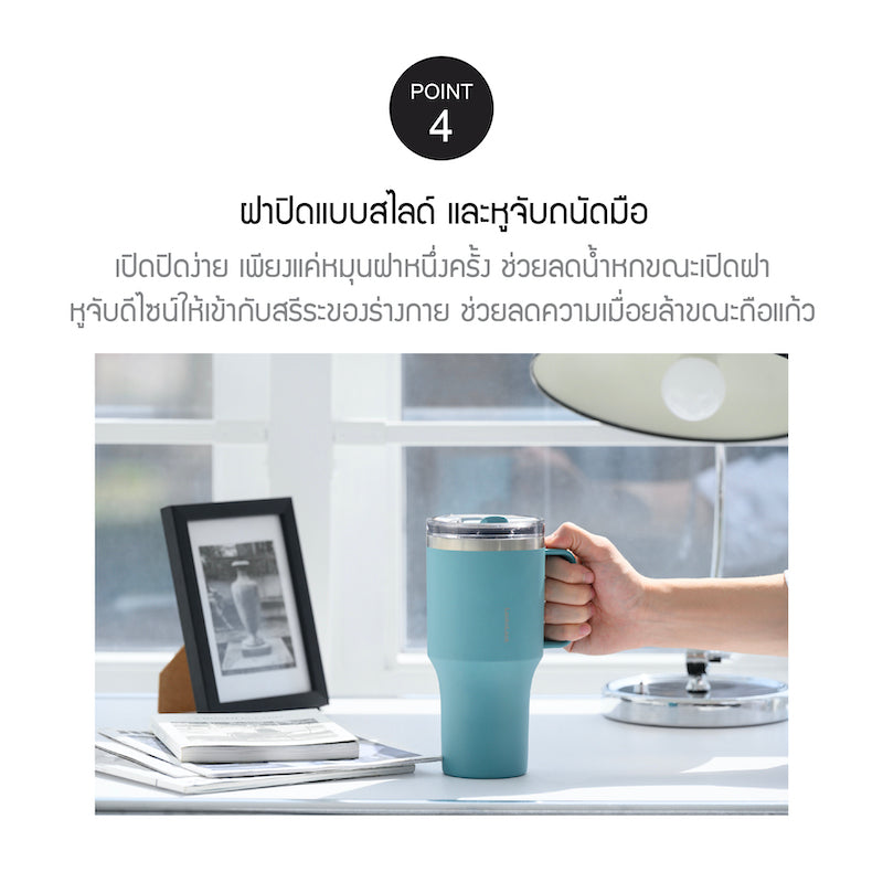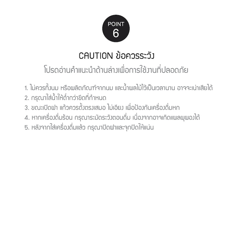 • ฝาเกลียวพร้อมจุกปิดแบบสไลด์ป้องกันน้ำหก