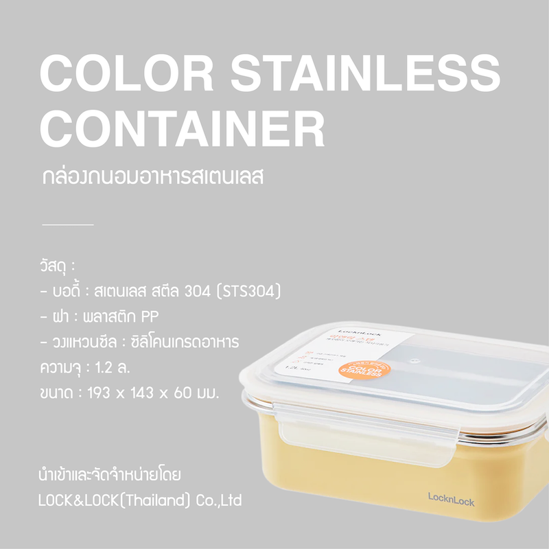 LocknLock กล่องถนอมอาหารสแตนเลส Color Stainless Container 1.2 L - LST505YEL