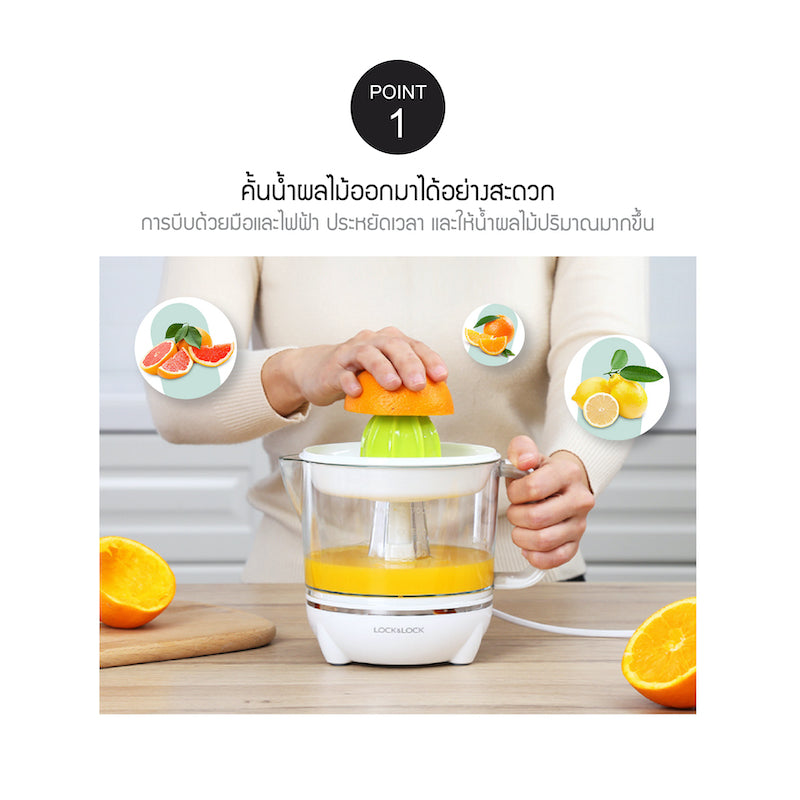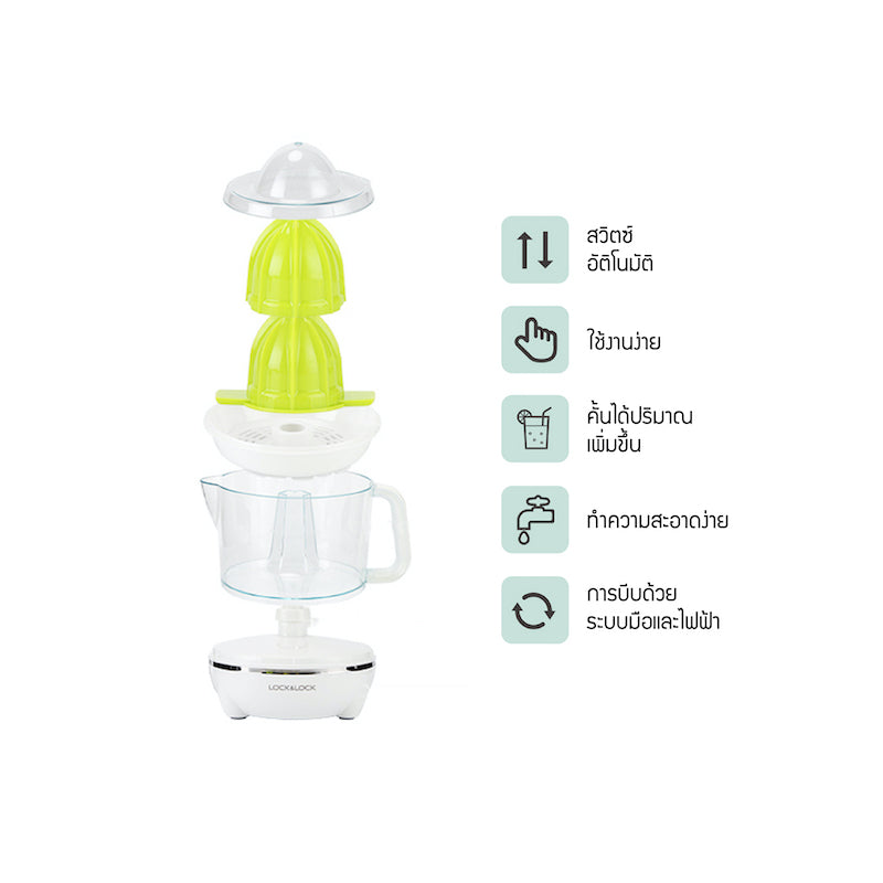 - คั้นน้ำผลไม้ได้อย่างสะดวก ด้วยการบีบด้วยมือและไฟฟ้า ประหยัดเวลา
