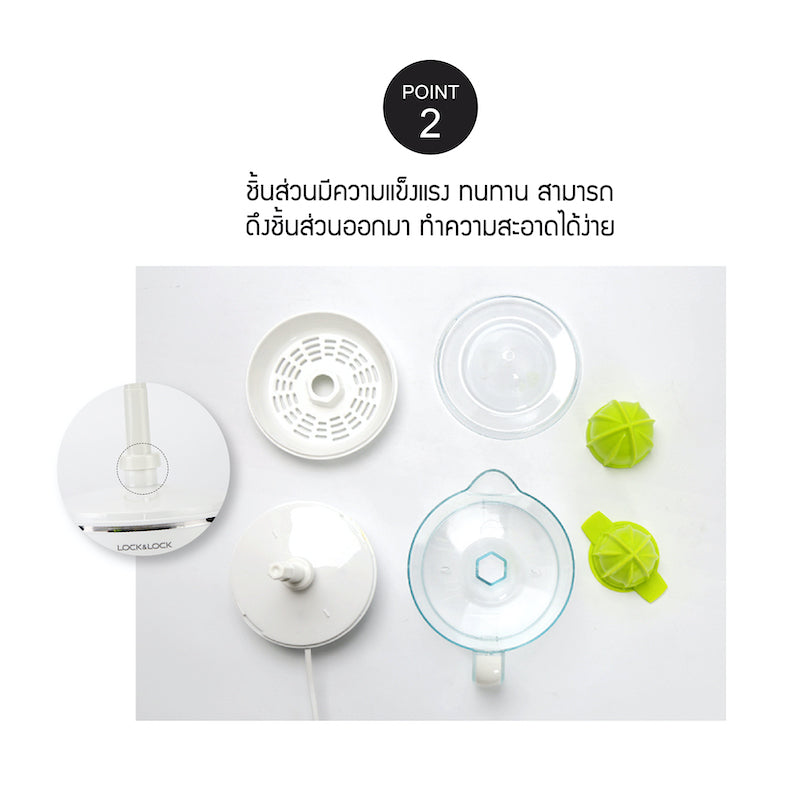 - ชิ้นส่วนมีความแข็งแรงทนทาน สามารถแยกชิ้นส่วนออกมาทำความสะอาดได้ง่าย