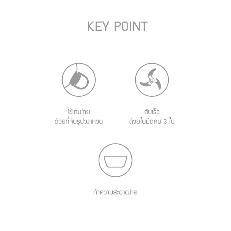 - บดสับวัตถุดิบขนาดเล็กหรือปริมาณน้อยๆ ได้รวดเร็ว ดึงซ้ำๆ เพื่อความละเอียดที่ต้องการ