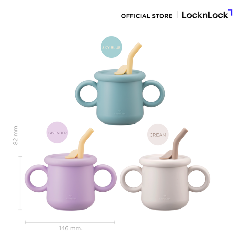 LocknLock แก้วหัดดื่ม Little Luv silicone straw cup set รุ่น LBB015