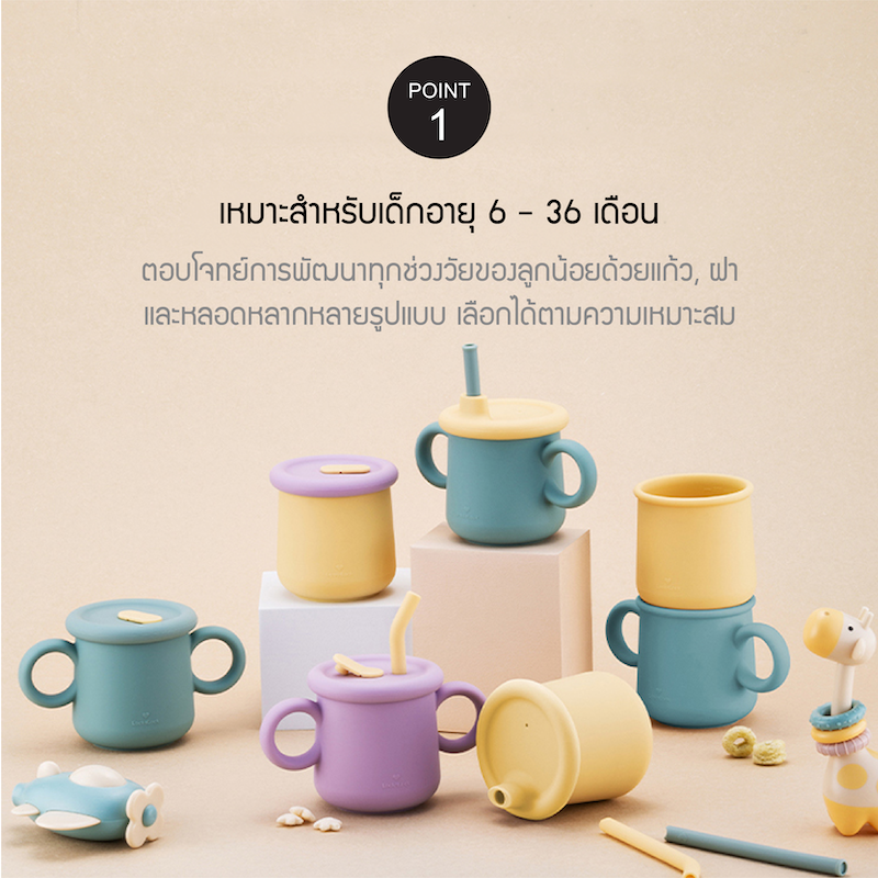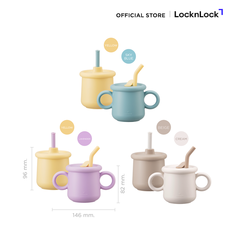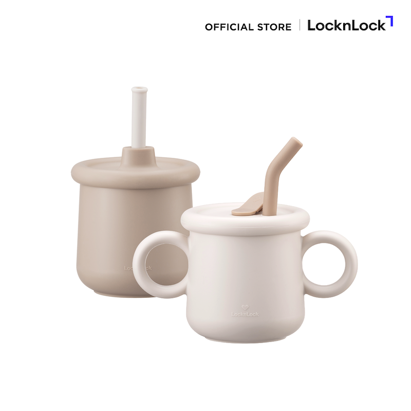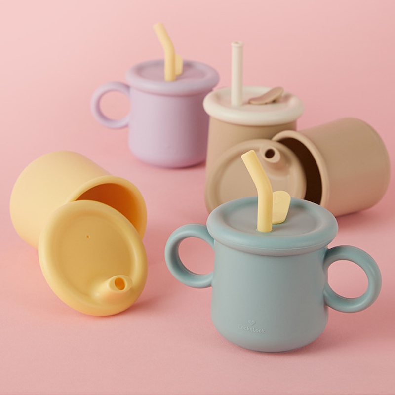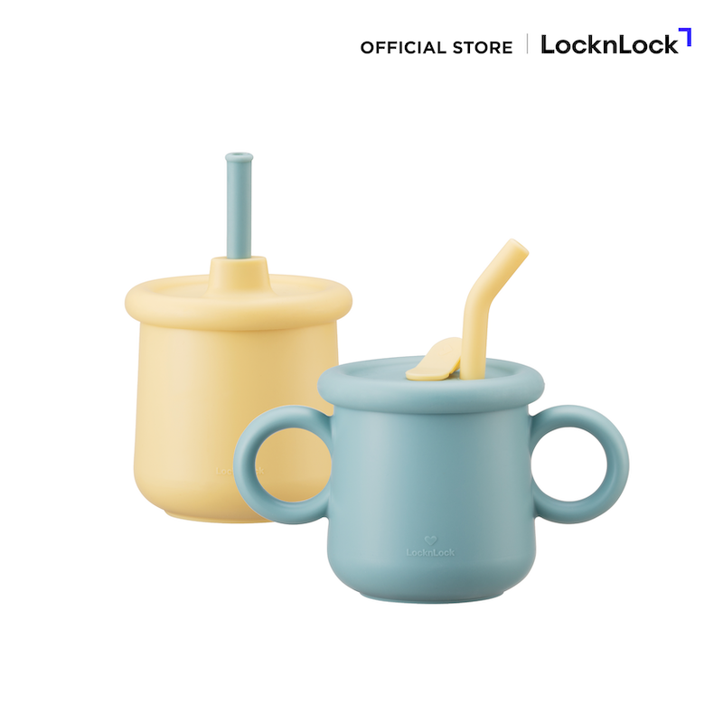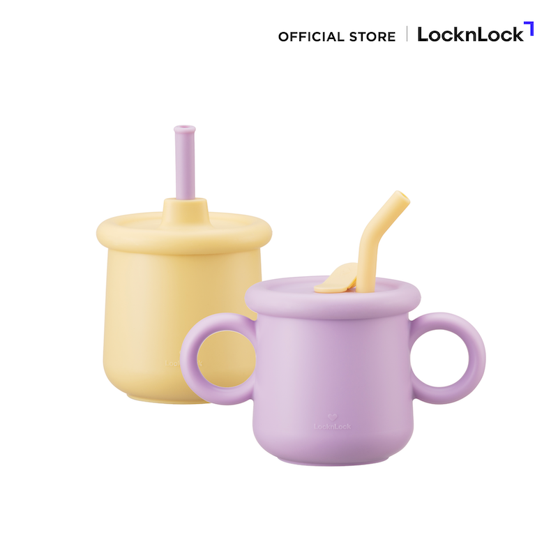 LocknLock เซตแก้วหัดดื่ม Little Luv silicone straw cup set รุ่น LBB015S7