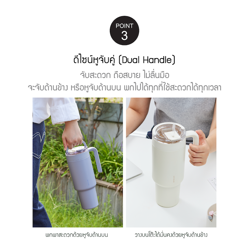 - หูจับพับเก็บได้ หิ้วสะดวก มาพร้อมหูจับด้านข้างแก้ว ถือแบบไหน ก็ตอบโจทย์ ไลฟ์สไตล์