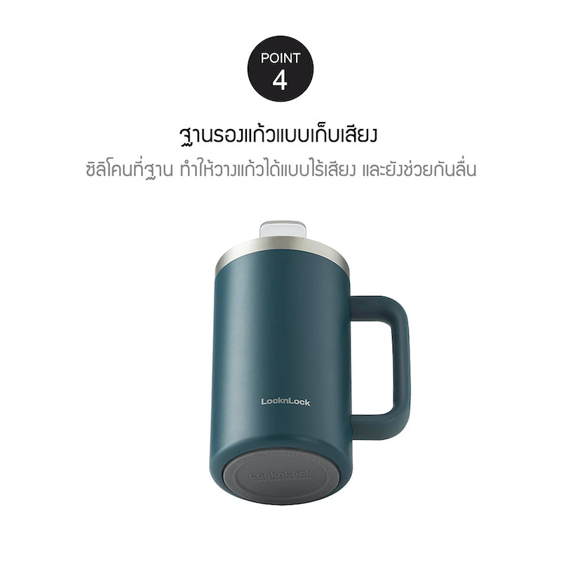 - มีซิลิโคนรองที่ฐานแก้ว ทำให้วางแก้วแบบไร้เสียง และช่วยกันลื่น