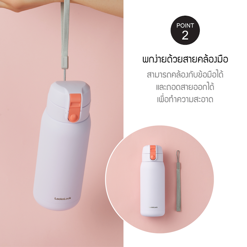 LocknLock Cotton Candy One - Touch Tumbler กระติกน้ำเก็บอุณหภูมิ ความจุ 370 มล. รุ่น LHC3233