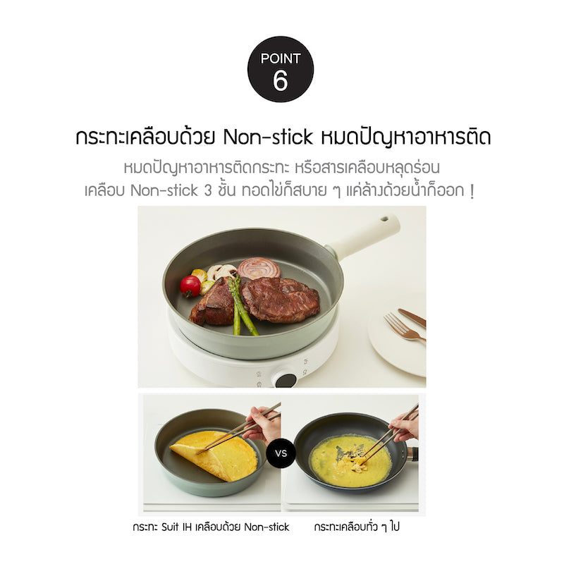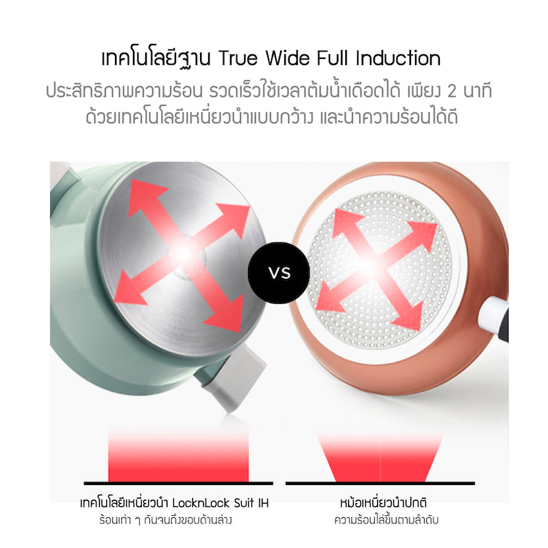 - เทคโนโลยี True Wild Full Induction (เหนี่ยวนำแบบกว้าง) ร้อนอย่างรวดเร็ว ใช้เวลาต้มน้ำเดือดเพียงแค่ 2 นาที