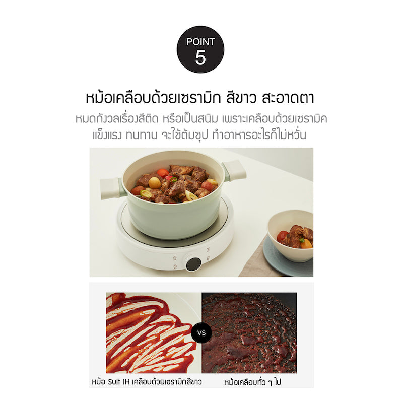 - หม้อเคลือบ เซรามิก สีขาวสะอาดตา มีความแข็งแรง ทนทาน หมดกังวลเรื่องสีติด หรือเป็นสนิม