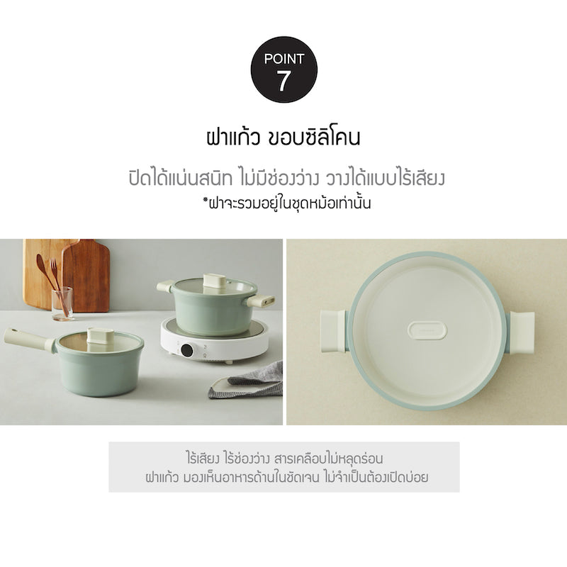 - พร้อมฝาแก้ว ขอบซิลิโคน ปิดแน่นสนิท ไม่มีช่องว่าง *ฝารวมอยู่ในชุดหม้อเท่านั้น